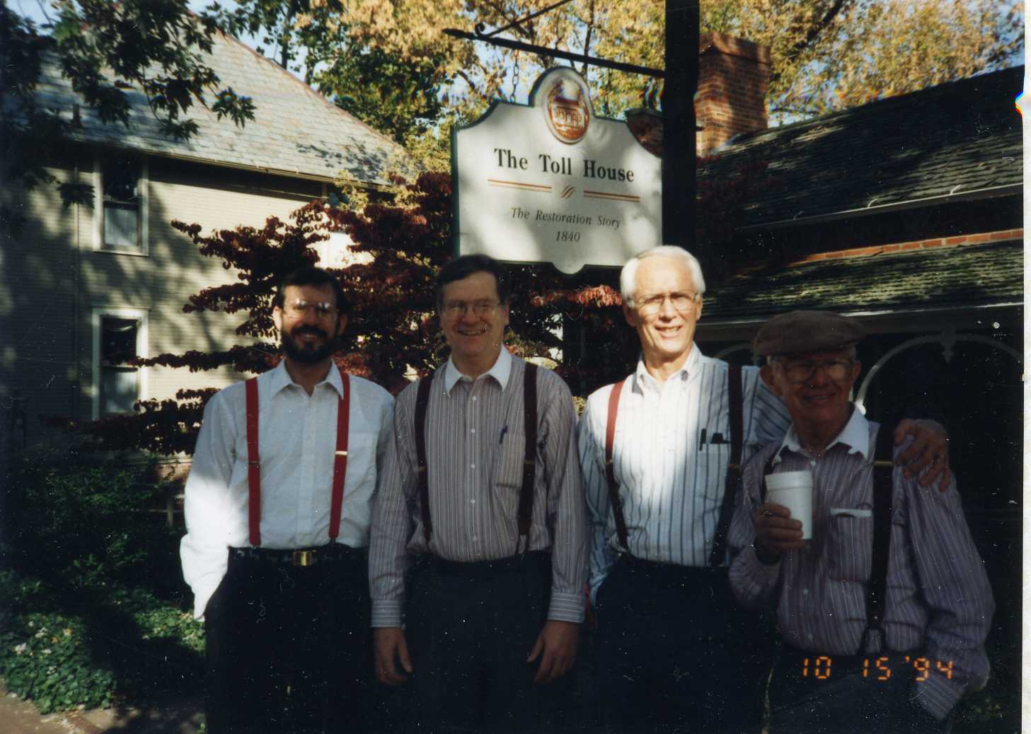 "Gordon Moore, Mike, Tom George, and Don Fulkerson by the Old Toll House in Roscoe Village 1994
